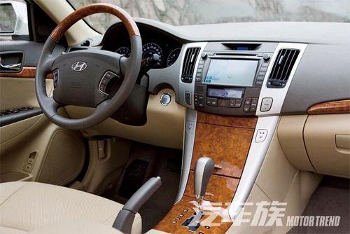 相比外觀的年輕態(tài),SONATA領(lǐng)翔的內(nèi)室改進(jìn)也算是大刀闊斧。雖然主打商務(wù),但全新的內(nèi)室風(fēng)格并不乏活潑氣息,簡單的顏色搭配和悅動非常相像?上У氖,做工和用料依然不夠講究,讓人略顯失望。還有就是仿桃木面板,可能它在一部分人群心目中是個顯范兒的設(shè)計,當(dāng)然還要看材料的顏色和質(zhì)感以及使用頻率和位置。中控臺是個亮點,也讓我看到了現(xiàn)代今后的家族特征。方向盤下方取消了鑰匙孔,而使用無鑰匙啟動系統(tǒng),開始向同級別的日本車靠攏。藍(lán)色自發(fā)光儀表不僅美觀,簡潔時尚的三環(huán)設(shè)計,更將車輛狀態(tài)清楚地展現(xiàn)在駕駛者面前。“后排工程”一直是日韓中級車最引以為傲的地方,SONATA領(lǐng)翔當(dāng)然也不例外。真皮包裹的座椅以及扶手部分的材料非常柔軟,還設(shè)有煙灰缸、杯架及手動遮陽簾,中央扶手后部連通行李廂,人性化做得不錯。
