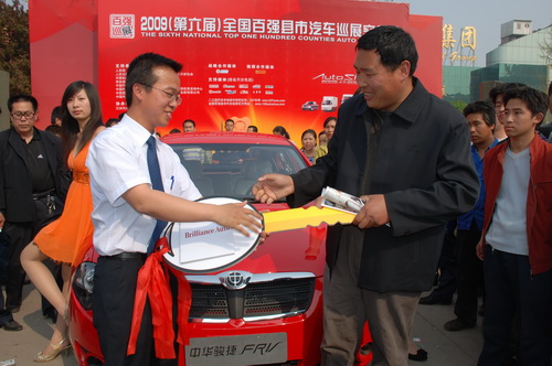 中新網(wǎng)4月19日電 4月12日下午3時(shí)許,中華駿捷FRV新車交接儀式在辛集站巡展現(xiàn)場舉辦。一位辛集的中華駿捷FRV新車主接過閃閃發(fā)亮的鑰匙模型,激動地說道,謝謝華晨汽車、謝謝百強(qiáng)巡展。