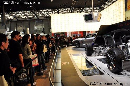 日產(chǎn)GT-R展車的旁邊停著一輛解剖的演示車,很多似懂非懂的觀眾都對著解剖車在給身邊的人認(rèn)真地講解著。我身后的一位兄弟指著GT-R的發(fā)動機(jī)向他的女友說著:看,雙離合變速器!@#¥%……&* 我心想:朋友,雙離合變速器真的在后面!看來,高科技跑車除了跑得快,還有一個重要的作用——給人們提供聊天吹牛的素材。