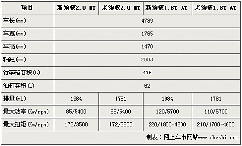 新領(lǐng)馭4789mm車(chē)長(zhǎng)、1765mm的車(chē)寬、1470mm的車(chē)高以及2803mm的軸距均與老款領(lǐng)馭車(chē)型如出一轍,由此可見(jiàn)新領(lǐng)馭寬大的內(nèi)部空間沒(méi)有任何改變。在動(dòng)力方面,新老領(lǐng)馭2.0入門(mén)車(chē)型和1.8T主推車(chē)型同樣搭載2.0自然吸氣四缸引擎和1.8T渦輪增壓引擎。但新領(lǐng)馭搭載的1.8T渦輪增壓引擎經(jīng)過(guò)了重新調(diào)教,最大功率達(dá)120Kw,較老款領(lǐng)馭1.8T車(chē)型的110Kw高出10Kw。
