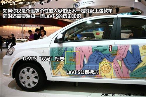 這款樂風的新車型是由通用雪佛蘭和國際知名牛仔褲制造商LeVI'S合力打造的一款限量版車型,白色的車身成了畫板,而車門上的大量牛仔褲圖案就像躍然紙上的涂鴉,相信這款車無論開到哪里都必然會引起路人的注意。而對于LeVI'S歷史有所了解的人一定知道,前門上的“雙馬”標志是最早出現(xiàn)在1886年的牛仔褲商標,也是現(xiàn)今歷史最悠久的服飾商標之一?梢哉f它的出現(xiàn)不僅僅是為了體現(xiàn)個性,更是一種文化的展示。