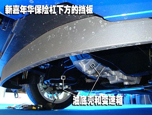長安福特新建年華和廣豐雅力士相同,沒有設計發(fā)動機和變速箱下方的護板,不過前保險杠下緣突出的擋板同樣起到了發(fā)動機油底殼和變速箱底殼的第一道防線的作用。