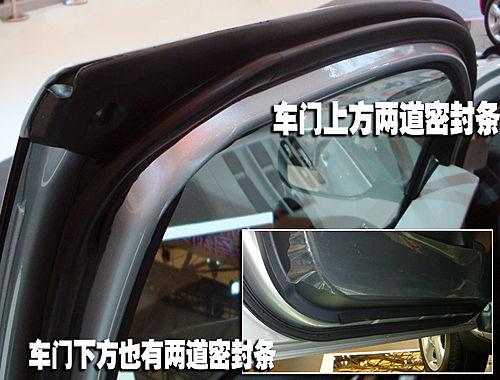 雅力士除了在車門門框位置提供一道密封條之外,在車門上方以及下方還分別設(shè)計了密封條。其中上方為兩道密封、下方為兩道密封,這樣的設(shè)計在這四款車型中是獨有的。