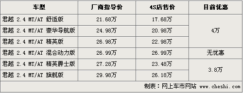 據(jù)4S店銷售人員介紹,目前購買現(xiàn)款君越全系車型可優(yōu)惠到3.8萬元,部分4S店還將贈(zèng)送2000元的裝飾,優(yōu)惠累計(jì)達(dá)4萬,但混合動(dòng)力版君越仍然是全款訂車或購買,沒有優(yōu)惠幅度。君越目前有黑色和同時(shí)受到眾多關(guān)注的新君越,銷售人員介紹,這款車現(xiàn)在就可以接受預(yù)訂,訂金為1000元,屆時(shí)新車到店以后,消費(fèi)者如果不滿意可退還全額訂金。