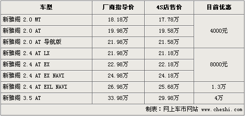 據(jù)4S店銷售人員介紹,目前購新雅閣2.0排量車型可優(yōu)惠現(xiàn)金4000元,2.4排量可優(yōu)惠8000元,2.4EXL導(dǎo)航版可以優(yōu)惠1.3萬元。而3.5排量最高降幅達(dá)到了4萬元。相比4月份的優(yōu)惠幅度,價(jià)格并沒有太多起伏。目前2.0排量多款車均需要預(yù)訂,訂金為2000元,半個(gè)月時(shí)間便可以交車。2.4L供車較為充足,4S店主要有黑色、銀色等款可供選擇,同時(shí)各店均能夠提供試乘試駕服務(wù)。