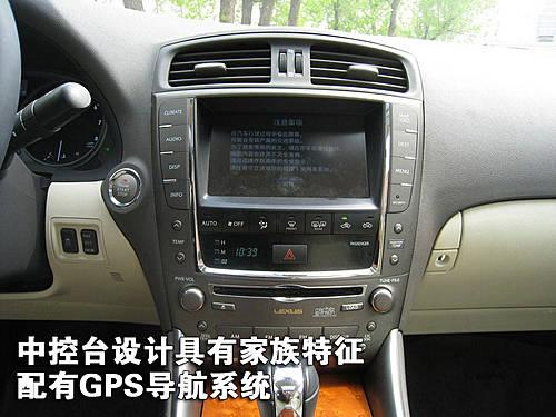 IS300裝備了GPS語音導(dǎo)航系統(tǒng),實(shí)際使用中,導(dǎo)航信息準(zhǔn)確,操作簡單便捷。中控臺(tái)整體設(shè)計(jì)風(fēng)格具有家族特性。