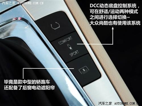 大眾CC搭配大眾的DSG變速箱,應該也是跟邁騰一樣的DQ250。排擋樣式跟其他大眾車型都一樣,在擋把上有DSG的字樣。跟尚酷一樣配備了大眾的新技術DCC動態(tài)底盤控制系統(tǒng),可以在舒適和運動兩種模式中選擇切換。但遺憾的是踏板都是非常普通的樣式,未免太過于低調了。畢竟也是一款轎跑車,適當在細節(jié)上增強些視覺效果會更受歡迎。不過,那好像也不是大眾的風格。