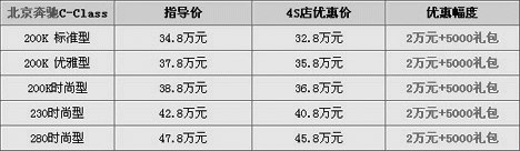 市場情況:奧迪A4L的上市大大分流了奔馳C級(jí)的目標(biāo)客戶群,所以C-Class也終于抵不住了,在上市大半年后推出了現(xiàn)金優(yōu)惠方案。據(jù)悉,C-Class全系均可優(yōu)惠2萬元現(xiàn)金,另外再送價(jià)值5000元的禮包組合。而且現(xiàn)車充足。