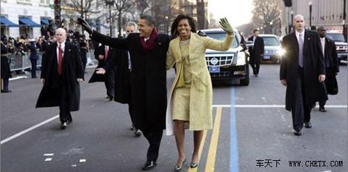 在2009年1月20日舉行的美國(guó)總統(tǒng)就職慶典禮上,豪華的總統(tǒng)車(chē)隊(duì)在15大街緩緩向前行進(jìn),這其中就包括了奧巴馬乘坐的全新款凱迪拉克DTS總統(tǒng)專(zhuān)車(chē)。