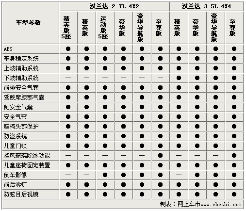 國(guó)產(chǎn)漢蘭達(dá)的安全配置還是比較齊全的,所有車型都配備的ABS、EBD、車身穩(wěn)定系統(tǒng)、7安全氣囊等裝備,尤其是車身穩(wěn)定系統(tǒng)已經(jīng)成為了漢蘭達(dá)的標(biāo)準(zhǔn)配置,該項(xiàng)配置可以大大提高車輛行駛中的安全性能。漢蘭達(dá)3.5排量的車型在配備了上坡輔助系統(tǒng)的同時(shí),還配備了下坡輔助系統(tǒng),大大提高了該車的越野性能。頂配車型上還配備了擋風(fēng)玻璃除冰功能,這是該級(jí)別車型中很少見到的。