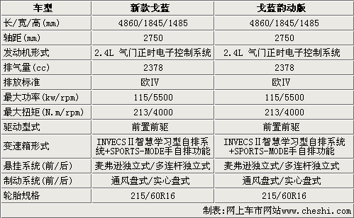 三菱全新戈藍和韻動版的整車尺寸為4860/1845/1485mm,軸距達到了2750mm,與雅閣、凱美瑞達到同一水平。新款戈藍和韻動版搭載2.4L發(fā)動機,最大功率達到115kw/rpm,最大扭矩為213N.m/4000rpm.,匹配INVECSⅡ智慧學習型手自一體變速箱,并配備有換擋撥片功能。戈藍采用多連桿式后懸掛系統(tǒng),并采用前通風盤式,后實心盤式制動系統(tǒng),使這款車更具操控性和安全性。