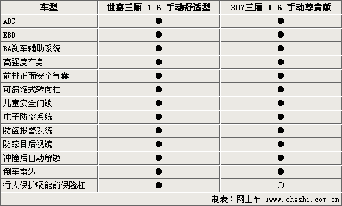 東風(fēng)雪鐵龍世嘉三廂和標(biāo)致307都屬于同一平臺(tái)的產(chǎn)物,所以在車身結(jié)構(gòu)上完全一樣。作為同一級(jí)別的兩款車型在安全配置方面基本相同。ABS、EBD、安全氣囊、安全車身都被列為了它們的標(biāo)準(zhǔn)配置。值得一提的是它們還裝備了沖撞自動(dòng)解鎖系統(tǒng),大大確保了在發(fā)生事故時(shí)乘員的安全。但仔細(xì)看下來,世嘉三廂配備了碰撞緩沖保險(xiǎn)杠,該項(xiàng)配置確保了在發(fā)生事故時(shí)對(duì)行人傷害的程度降到最低。