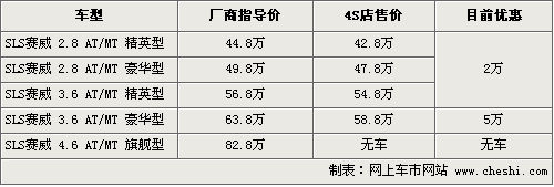 筆者從北京地區(qū)凱迪拉克經(jīng)銷商處了解到,目前SLS賽威的優(yōu)惠幅度有一定幅度的下降,其中2.8排量和3.6精英版優(yōu)惠2萬(wàn)元,3.6豪華版則優(yōu)惠5萬(wàn)元。現(xiàn)車顏色主要是黑色款,其他還需要預(yù)訂,但訂期時(shí)間較長(zhǎng)。