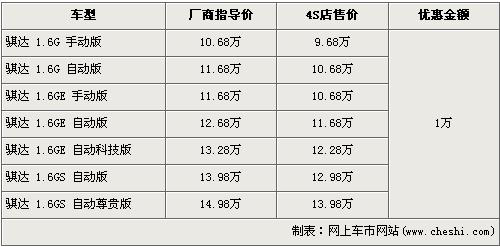 據(jù)東風(fēng)日產(chǎn)4s店銷售人員介紹,目前東風(fēng)日產(chǎn)騏達(dá)全系優(yōu)惠1萬元。經(jīng)優(yōu)惠優(yōu)惠后,入門級(jí)的1.6G手動(dòng)版售價(jià)下降到了9.68萬元,而全系最高配的1.6 GS自動(dòng)尊貴版售價(jià)也降到了13.98萬元,跌破了14萬元。銷售人員還介紹,目前店內(nèi)沒有騏達(dá)現(xiàn)車,欲購買者需交2000元訂金約等兩個(gè)月時(shí)間。