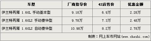 據(jù)經(jīng)銷商處銷售人員介紹,目前購買伊蘭特兩廂的消費(fèi)者還可以得到全系7.5折的優(yōu)惠,入門級(jí)車型售價(jià)已經(jīng)不足7萬元,消費(fèi)者購車后必須在店內(nèi)做一條龍服務(wù)。伊蘭特兩廂先已停產(chǎn),現(xiàn)售的車型均為庫存車,并且多家經(jīng)銷店的伊蘭特兩廂庫存車已銷售完,所以很多4S店已經(jīng)不接受此車的預(yù)訂。欲購買此車需交訂金3000元約等一周可提車,若錯(cuò)過這批庫存車,將不會(huì)再買到此車型。