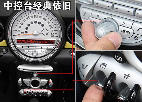 新一代Mini Cooper和Mini Cooper S敞篷版中控臺(tái)自上而下依然熟悉的大圓形時(shí)速表、音響調(diào)節(jié)按鈕及旋鈕、CD機(jī)頭、自動(dòng)空調(diào)及車窗和中控門鎖等控制開關(guān),與其它Mini車型如出一轍。