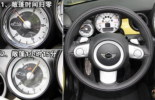 新一代Mini Cooper和Mini Cooper S敞篷版較其它Mini車型增配備了敞篷開啟計(jì)時(shí)表,它可以累積長(zhǎng)達(dá)7個(gè)小時(shí)的敞篷開啟記錄。但是在風(fēng)沙較大的北方,這個(gè)計(jì)時(shí)表也許只是個(gè)裝飾或者身份象征而已。