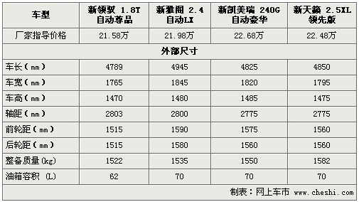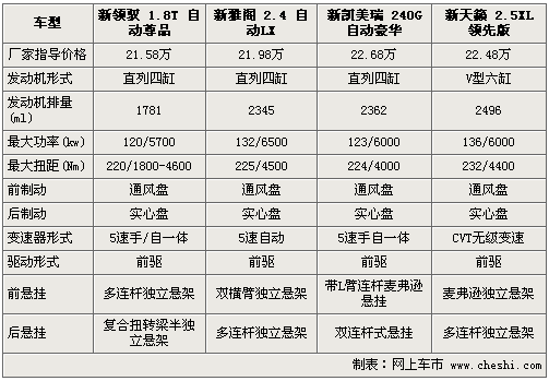 新領(lǐng)馭全系7款車型已于上月底正式上市,售價為16.98-30.38萬元。除前臉和尾部的全新設(shè)計外,老款1.8T引擎經(jīng)過重新調(diào)教最大功率達120Kw。而在此中級車細分市場中,新雅閣、新凱美瑞和新天籟均占據(jù)著一定的市場份額。下面通過對四款價格相近車型進行詳實解析,以便為您的購車提供一定的參考。