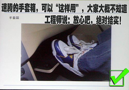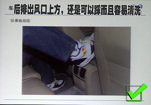一汽大眾產(chǎn)品部工程師在演示這張照片的時候令在場媒體記者很吃驚,扶手箱打開后竟然可以當作副駕駛乘員的歇腳板。而且一汽大眾產(chǎn)品部工程師還告訴我們,“盡管放心的去用吧,它足夠結(jié)實!”。