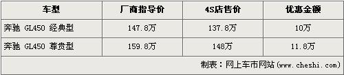 據(jù)經(jīng)銷商處銷售人員介紹,目前國內(nèi)在售的奔馳GL級分為GL450 經(jīng)典版與GL450 尊貴版,近日奔馳GL系的最高優(yōu)惠金額增到了11.8萬元。經(jīng)優(yōu)惠后,低配車型的經(jīng)典版售價降為了137.8萬元,跌破了140萬,高配的尊貴版經(jīng)全系最高的10萬元優(yōu)惠后,車型售價也降為了148萬元,首次跌破150萬元。