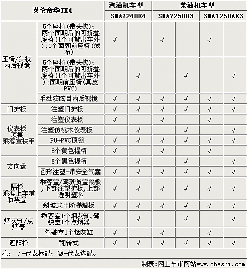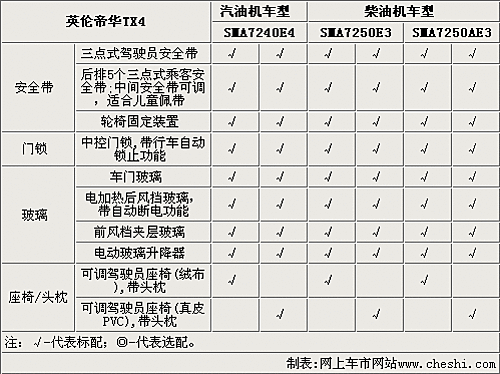 英倫TX4全系車型只配備手動空調(diào),駕駛席和乘客席都配備照明燈,全系配備CD和收音機,而且乘客室可以選裝獨立音響控制。TX4的高配車型可以選裝MP3、GPS系統(tǒng)和倒車?yán)走_(dá)。另外,這款車型的乘客室和駕駛席都配備了通訊設(shè)施,實用性更強。