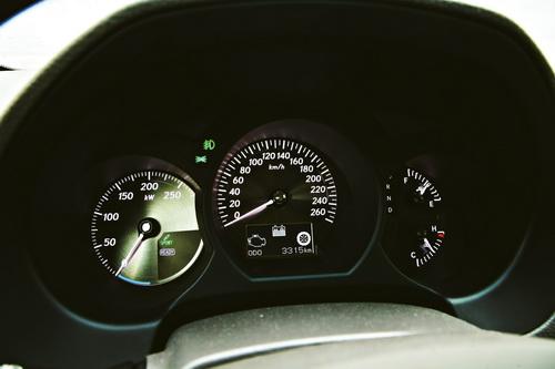 由于使用了電動(dòng)機(jī)系統(tǒng),GS450h的儀表盤并沒有設(shè)置發(fā)動(dòng)機(jī)轉(zhuǎn)速表,取而代之的一個(gè)功率表,隨時(shí)顯示電動(dòng)機(jī)的瞬時(shí)輸出功率;至于中間的車速表和右邊的綜合信息表在所有車型上則都是一樣的。GS系列車型儀表盤另一個(gè)特點(diǎn)就是具有ECD電子色控裝置,能夠根據(jù)照射在儀表盤上的光線強(qiáng)度自動(dòng)調(diào)節(jié)自身亮度,保證駕駛員能夠清晰地讀取數(shù)據(jù)——安全實(shí)用的配置。