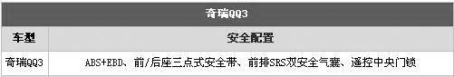 作為老資格的QQ3在安全方面沒有讓我們失望,從表中我們看到QQ3配備ABS+EBD,這在微型車中也是非常出眾的配置。靈活機(jī)動(dòng),價(jià)格低廉,油耗較低是QQ3最大的優(yōu)點(diǎn)。由于QQ3只是一款微型車,內(nèi)部空間不是很寬敞,并非全部符合國內(nèi)消費(fèi)者主流家庭轎車的選擇標(biāo)準(zhǔn),不過在配置方面,QQ3相比以前有很大提高,其舒適型車配備了動(dòng)力轉(zhuǎn)向、電動(dòng)門窗、電動(dòng)后視鏡、真皮座椅、CD和中央門鎖等。