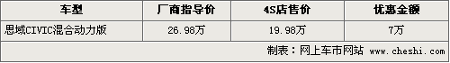 據(jù)4S店銷售人員介紹,目前思域混合動力版車型現(xiàn)車并不多,消費者購買現(xiàn)車可以直接優(yōu)惠現(xiàn)金5萬元,如果選擇訂車的話則最高可以優(yōu)惠到7萬元,優(yōu)惠后售價僅為19.98萬元。訂車的話訂金為2000元,需要等待約一個月時間。