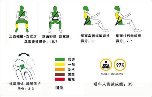 對(duì)于正面碰撞從上面的成績分析圖來看,6代高爾夫?qū)τ陬^部胸部的保護(hù)是很出色的,正面碰撞時(shí)駕駛員小腿部分有輕微傷害。側(cè)面碰撞時(shí)對(duì)于胸部和腹部保護(hù)一般,可能會(huì)受傷。對(duì)車輛被追尾時(shí)脖頸的保護(hù)比較出色?傮w成績看,高爾夫6代在歐洲的測(cè)試中對(duì)與成年人的保護(hù)是比較出色的。