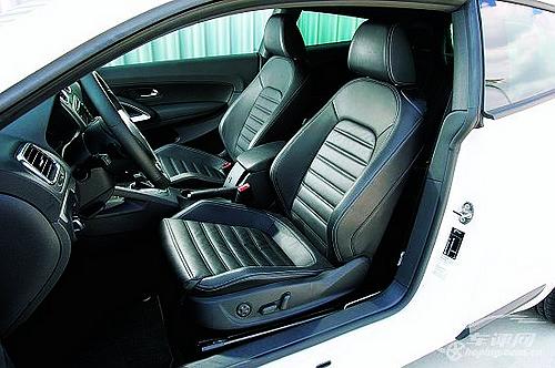 從EOS 搬過來的儀表臺符合“ 性價比”的要求,優(yōu)良的功能性一如既往。只是電動窗的按鈕移得很靠后。像碉堡的視野不利于觀察,這是因?yàn)檠很高而且立柱特寬。絕對有型,但是最好還是選裝價值3800 元的泊車?yán)走_(dá)。還建議選裝可分三級調(diào)節(jié)的減震器, 價格9250元, 外加18500 元的DSG變速箱。有了它們,運(yùn)動的程度幾乎可以上賽道去飚一把了。