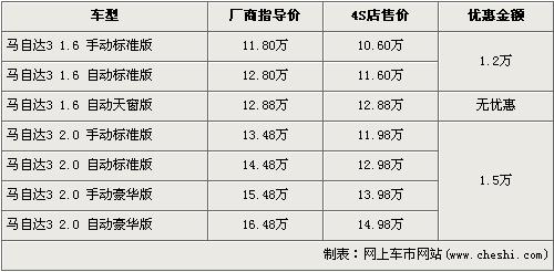 據(jù)長安馬自達(dá)4s店銷售人員介紹,除了4月份上市的1.6L馬自達(dá)3自動(dòng)天窗版沒有優(yōu)惠外,其余車型均有優(yōu)惠,最高達(dá)到了1.5萬元。馬自達(dá)3的1.6L車型有1.2萬元的優(yōu)惠,經(jīng)優(yōu)惠后全系入門級(jí)的1.6L手動(dòng)標(biāo)準(zhǔn)版售價(jià)從11.80萬元降到了10.60萬元。馬自達(dá)3得2.0L車型有1.5萬元的優(yōu)惠,經(jīng)優(yōu)惠后全系最高配的2.0L自動(dòng)豪華版售價(jià)跌破了15萬元,僅售14.98萬元。銷售人員還介紹,除了1.6L馬自達(dá)3自動(dòng)天窗版有現(xiàn)車外,其他車型都需預(yù)訂,訂金為1000元,最早約等一周后可提車。