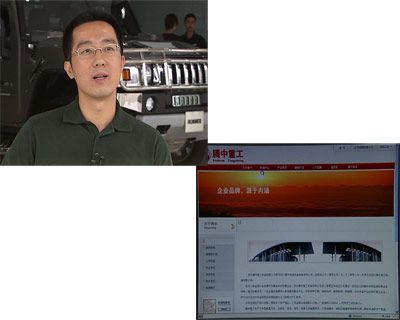 記者:“我的身后就是此次收購美國通用悍馬汽車的四川騰中重工機械有限公司,這家公司位于成都市新津工業(yè)園區(qū),這家企業(yè)在當?shù)厥窍喈數(shù)牡驼{(diào),我們來到這里的時候發(fā)現(xiàn),這里的廠門上沒有任何關于廠名的字跡,只有后面的那個標志告訴我們這里是騰中重工的所在地。據(jù)我們了解,這家企業(yè)主要生產(chǎn)橋梁機械和一些機械設備,并沒有生產(chǎn)整車的經(jīng)驗,那這樣的一家企業(yè)憑什么收購通用悍馬呢?”