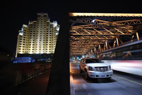 我正在駕駛一臺巨大的凱迪拉克,它的長度突破了5米,而高度和寬度都突破了2米,這讓正在我身旁的帕薩特看上去明顯比平時小了一號。帶有珠光效果的白色漆面和布滿周身的鍍鉻裝飾顯然是為了引起更好的關(guān)注度而特意安排的。這種外部裝飾效果很符合我對傳統(tǒng)凱迪拉克的定義,巨型而且總是閃閃發(fā)光,但這樣的裝備并不能將我現(xiàn)在駕駛的這臺車和一臺普通的凱雷德區(qū)別開來。