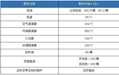 為了方便計算,我們假設空氣濾清器在第三次、第六次時進行更換,更換機油機濾的價格為700元,更換機油機濾和空氣濾清器的價格為1600元,更換火花塞和機油機濾的價格為1700元,而更換機油機濾和汽油濾清器的價格為2100元。在6萬公里時進行比較大的保養(yǎng),需要更換變速箱油和剎車油,不過由于經(jīng)銷商表示現(xiàn)在還沒有做過6萬公里的保養(yǎng),所以含工時費的價格不能確定。另外值得一提的是,邁騰為電子助力轉(zhuǎn)向,不需要定時更換轉(zhuǎn)向助力油,發(fā)動機使用了正時鏈條設計,省去了更換正時皮帶等部件的費用。