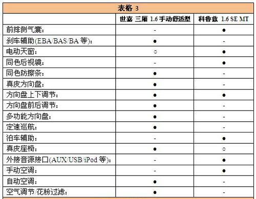 兩款車的最低配車型分別為世嘉的時尚型和科魯茲的SL版本,但三廂世嘉時尚型配置比科魯茲高很多,甚至比科魯茲SE也高勝一籌。安全配置方面兩款低配車型都只有雙安全氣囊,但世嘉裝備的剎車輔助系統(tǒng)是科魯茲所不具備的。其它便利性或舒適性配置,二者的差距更加明顯。其中比較重要的配置區(qū)別在于世嘉時尚型裝備了可前后調節(jié)的多功能方向盤,上面集成了定速巡航系統(tǒng),此外時尚型還配備了泊車輔助,這使駕駛者在停車時操作會更加方便。