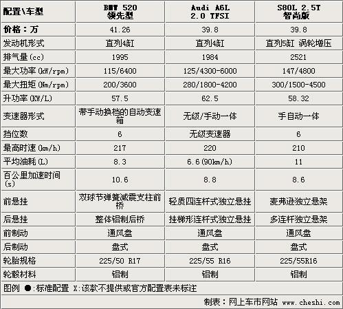 在動力配置方面,沃爾沃S80L入門車款就配備了2.5T發(fā)動機(jī),因此動力性方面會更占優(yōu)勢;而A6L的2.0T引擎兼顧了低排量和高效動力的優(yōu)勢同時也滿足了政府采購的需求;而寶馬新上市的520li僅僅配備了一臺4缸自然進(jìn)氣引擎,盡管其數(shù)據(jù)在同排量自然進(jìn)氣引擎中算是出色的了,但是比起另外兩個對手來說動力性上確實有些差距。
