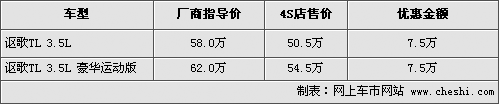 據(jù)4S店銷售人員介紹,目前謳歌TL在原來車型的基礎(chǔ)上增加了一款豪華運(yùn)動(dòng)版車型,運(yùn)動(dòng)版車型更換為19村外觀輪轂,并增加了擋泥板等套件,售價(jià)為62萬,F(xiàn)在消費(fèi)者購車最高可優(yōu)惠現(xiàn)金7.5萬元,優(yōu)惠后售價(jià)最低為50.5萬。作為一款豪華運(yùn)動(dòng)型轎車,其在價(jià)格上擁有較大的優(yōu)勢。目前TL普通版的現(xiàn)車較為齊全,并且有多款內(nèi)飾顏色可供挑選,而運(yùn)動(dòng)版還需預(yù)訂。