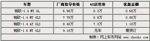 據(jù)4S店銷售人員介紹,目前銳歐全系優(yōu)惠幅度并不大,現(xiàn)售主要是1.4L排量車型,由于賽拉圖兩廂和三廂完全能夠滿足消費(fèi)者的購車需要,所以幾乎沒有消費(fèi)者選購1.6L排量的銳歐。1.4L三款車優(yōu)惠價(jià)格從0.68萬元到1.18萬元不等,同時(shí)店內(nèi)有銀色、紅色等現(xiàn)車可供選購,現(xiàn)車顏色較為齊全,消費(fèi)者選擇的空間比較大。