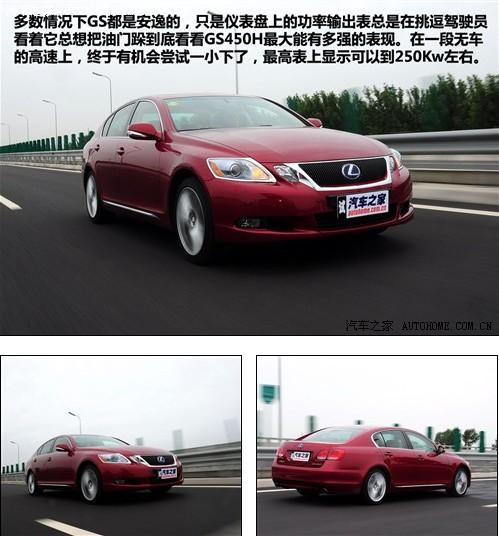 多數(shù)情況下GS450h都是安逸的,只是儀表盤上替代了發(fā)動機(jī)轉(zhuǎn)速表的功率輸出表總是在挑逗著駕駛員?粗傆邢氚延烷T踩到底,看看這款車最大能輸出多大的功率。終于在沒什么車的一段高速公路上,我的這個心愿得到了滿足,一腳到底的油門,汽油發(fā)動機(jī)和電動機(jī)一起給后輪做工,我的身體被牢牢的貼在椅背上,功率表上的指針直到指向250Kw左右時才停住。在車速達(dá)到了200km/h時,在車內(nèi)可以明顯的感覺到發(fā)動機(jī)升到了最高檔位,功率也隨之降了下來,功率表的指針一下掉到了100Kw左右的位置。