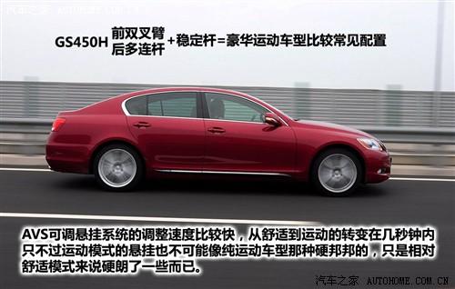 GS450h上裝配的AVS適應(yīng)式可調(diào)懸掛系統(tǒng),可以自動連續(xù)調(diào)整減震器的阻尼。當(dāng)然,也可以通過人工設(shè)置,分為普通和運動兩種狀態(tài)。普通模式下,懸掛和減震系統(tǒng)更多的顧及車內(nèi)舒適程度,偏軟的懸掛和松軟舒適的座椅讓駕駛員很難有想深踩油門的沖動,大部分的路感被懸掛系統(tǒng)吸收,傳進(jìn)車內(nèi)的只有少數(shù)幅度稍大一點的波動;運動模式下的懸掛系統(tǒng)表現(xiàn)得相對更敏感,對路面信息的傳遞也更清晰一些,但還談不上純正的運動車型的那種硬邦邦的懸掛調(diào)校,畢竟這不是那一類型的車。
