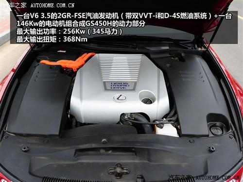 我們還是有必要先來了解一下這款車的動力系統(tǒng),首先是一臺3.5升的6缸汽油發(fā)動機(jī),這臺發(fā)動機(jī)所具備的雙VVT-i系統(tǒng)和D-4S燃油系統(tǒng)的應(yīng)用讓燃油燃燒更加充分,所提供的368牛米的最大扭矩和218千瓦的最大功率已經(jīng)讓人滿意了,再加上一臺147千瓦和275牛米的電動機(jī)的輔助,GS450h的動力系統(tǒng)看起來已經(jīng)相當(dāng)強大。不過,實際上最終的輸出功率并不是將兩者的數(shù)值簡單的相加,由于電動機(jī)和發(fā)動機(jī)采用類似混連的方式,因此GS450h最終的輸出功率為256 kW。