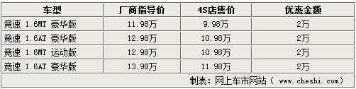 據(jù)北京地區(qū)4S店銷(xiāo)售人員介紹,青年蓮花首款進(jìn)口跑車(chē)-競(jìng)速目前車(chē)型較全,現(xiàn)車(chē)銷(xiāo)售可直接在廠家調(diào)整萬(wàn)元的基礎(chǔ)上優(yōu)惠1萬(wàn)。同時(shí)還表示很快將有國(guó)產(chǎn)版本車(chē)型推出,所以?xún)r(jià)格調(diào)整也是為了讓進(jìn)口車(chē)型接近將要推出的國(guó)產(chǎn)競(jìng)速。問(wèn)及何時(shí)將有國(guó)產(chǎn)競(jìng)速可以購(gòu)買(mǎi)時(shí),各經(jīng)銷(xiāo)商均表示雖然具體時(shí)間尚不確定,但肯定將在數(shù)月內(nèi)國(guó)產(chǎn)。