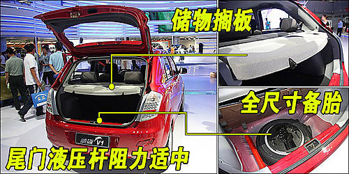 天津一汽威姿V1尾門開啟輕巧,外部則需要用鑰匙開啟。后備箱蓋采用機(jī)械式支撐,開啟時(shí)支撐度一般,備胎位于行李箱底部。