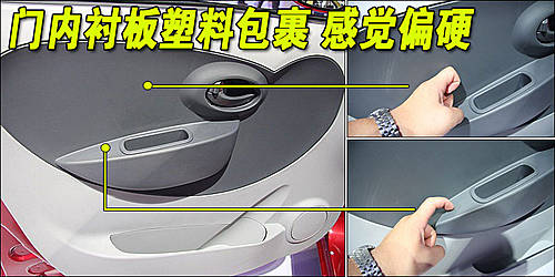 天津一汽威姿V1門內(nèi)襯板由塑料包裹,手觸感覺整體偏硬,胳膊長(zhǎng)時(shí)間放置會(huì)感覺勞累。