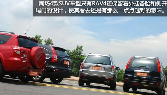 RAV4是國(guó)產(chǎn)豐田陣型中體積最小的SUV車型,但也運(yùn)用了其余兩個(gè)老大哥的一些設(shè)計(jì)元素。引擎罩上兩條隆起的肌線露出些許SUV的氣勢(shì),修長(zhǎng)的車身線條使整車看起來(lái)毫不失色于其他對(duì)手。RAV4是同場(chǎng)4款SUV車型唯一還保留著外掛備胎的設(shè)計(jì),使RAV4從后方看去還是有那么一點(diǎn)點(diǎn)越野的性格。