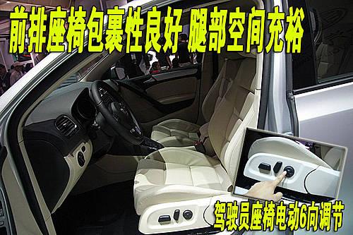 第六代高爾夫整車座椅均采用真皮材料,駕駛席座椅前后、靠背角度、座椅高度為電動(dòng)調(diào)節(jié)。各按鈕四周做工較細(xì)致,但感覺比較松垮。乘坐時(shí)可以感覺到前排座椅對(duì)于背部的支撐與包裹十分到位,同時(shí)前排座椅坐墊長(zhǎng)度也很合適,對(duì)大腿部分的支撐充足。