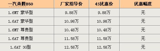 品牌看點(diǎn):對(duì)于一款馬自達(dá)和德國大眾技術(shù)融合的車型,B50與B70的開發(fā)模式一樣,首先在產(chǎn)品的核心技術(shù)上先安下“放心丸”,而且9.88萬元-12.58萬元定價(jià)可以說是覆蓋了市場(chǎng)上主流1.6L中級(jí)車的價(jià)格范圍,奠定了產(chǎn)品的競(jìng)爭(zhēng)力基礎(chǔ)?梢哉fB50的上市解決了奔騰品牌僅一款B70車型獨(dú)打的局面,目前,奔騰B70月銷5000輛成績(jī)幾乎于老馬自達(dá)6不分上下。B50的上市后對(duì)B70在1.6L市場(chǎng)的缺失將帶來彌補(bǔ)作用。