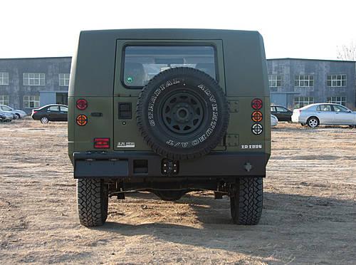 其外形設計的目標原則是強調(diào)在繼承中發(fā)展的思路,實現(xiàn)突破創(chuàng)新和現(xiàn)代感的全新造型;強調(diào)具有中國文化底蘊,不與國內(nèi)、國外車型雷同;在保持傳統(tǒng)特色的同時,來強化現(xiàn)代感。其以粗獷、簡潔、威武的造型,展現(xiàn)了我軍威武之師、現(xiàn)代軍隊的風貌和現(xiàn)代“硬派”越野車的風格。外形個性鮮明,車身外觀緊湊而流暢,前臉造型模仿狼眼外眼角上揚、怒視前方的表情,與前保險杠融為一體的狼牙造型,將野性、威猛的氣勢演繹得淋漓盡致。篷頂后部稍向下沿伸,恰似豹子起跑前的后坐姿勢,突出了整車的動感與強悍。