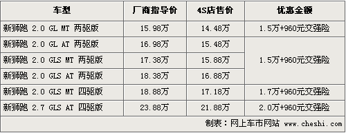 據(jù)4S店銷售人員介紹,目前購買獅跑可以贈送960元的交強險,同時有1.5萬-2萬元不等的現(xiàn)金優(yōu)惠。兩驅(qū)標準版優(yōu)惠后售價僅為14.48萬元。目前經(jīng)銷商處有黑色、銀色等現(xiàn)車供應(yīng),藍色等款需要預(yù)定,訂金為2千元,月內(nèi)便可以順利提車。