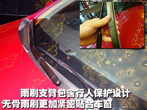 思鉑睿的前風擋采用雨點感應式可變間歇式無骨刷,無骨雨刷可以有效的保持前風擋的干凈。